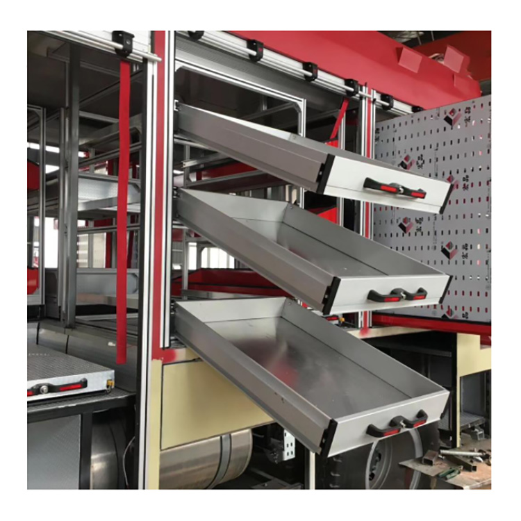 This fire truck drawer can be used in all kinds of fire engines, all made of aluminum alloy, light weight, good corrosion resistance, unique structural design and easy installation.